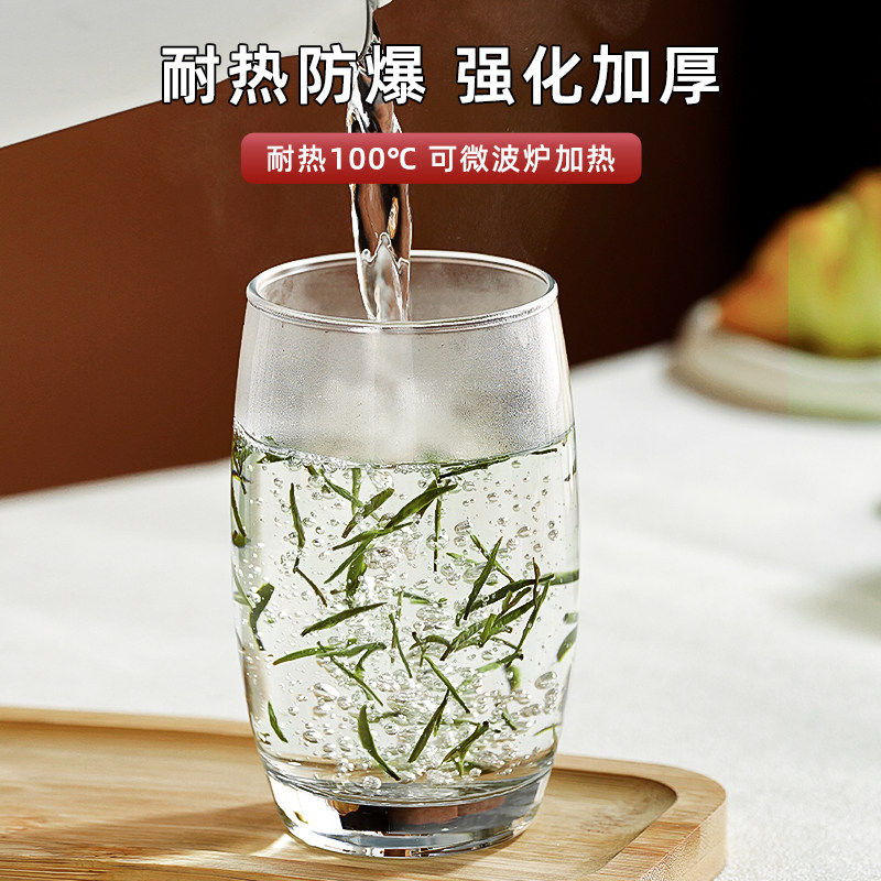 玻璃杯6只装家用水杯加厚耐热透明喝水杯泡茶杯牛奶杯套装啤酒杯