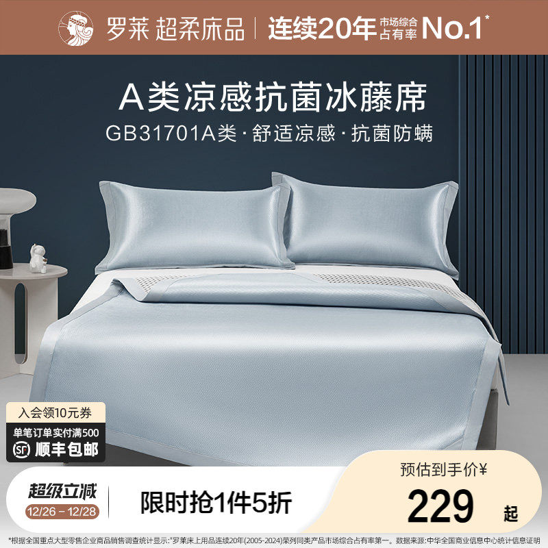罗莱家纺冰藤席冰丝凉席夏季可折叠双人学生宿舍单人免水洗三件套