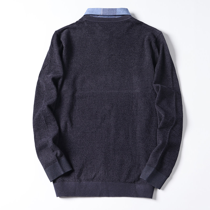 大牌撤标春秋冬新款男士经典休闲保暖舒适摇粒绒假两件双领针织衫