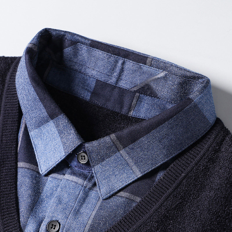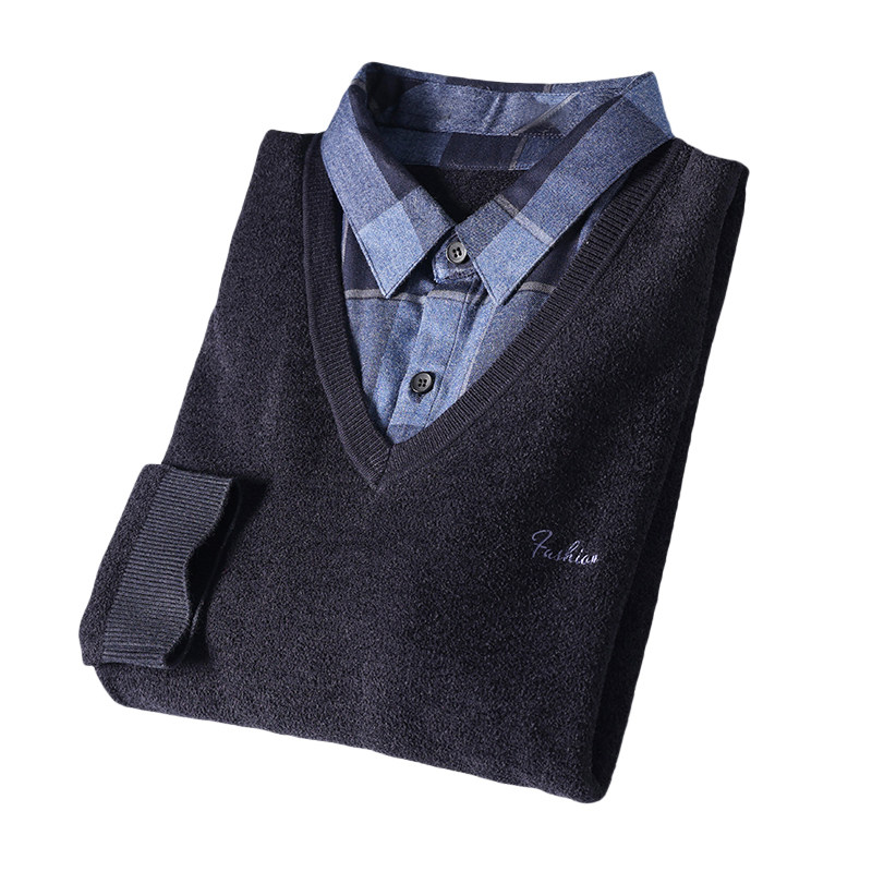 恒源祥一体绒羊毛衫男毛衣冬季中年假两件加绒加厚保暖爸爸打底衫