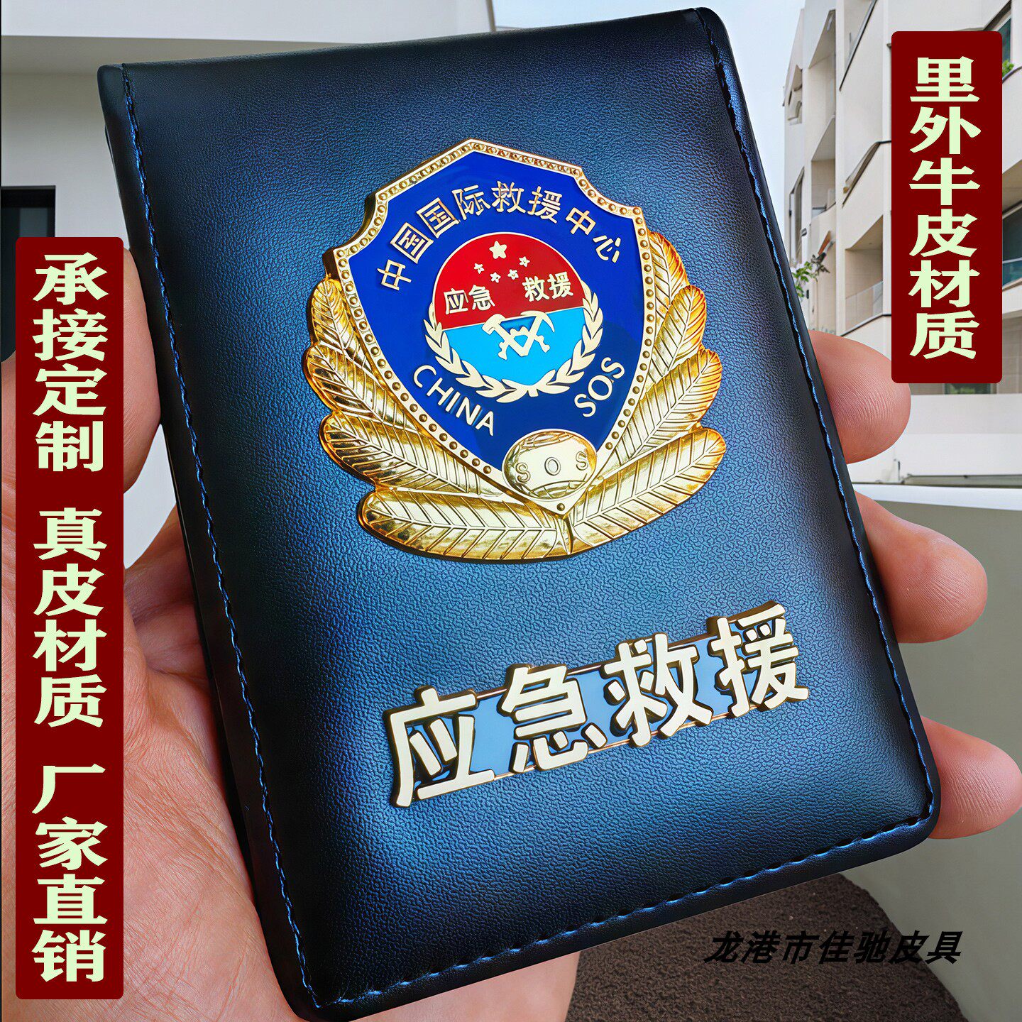定制真皮国际应急救援工作证卡套皮套定做卡包高档牛皮证件保护套