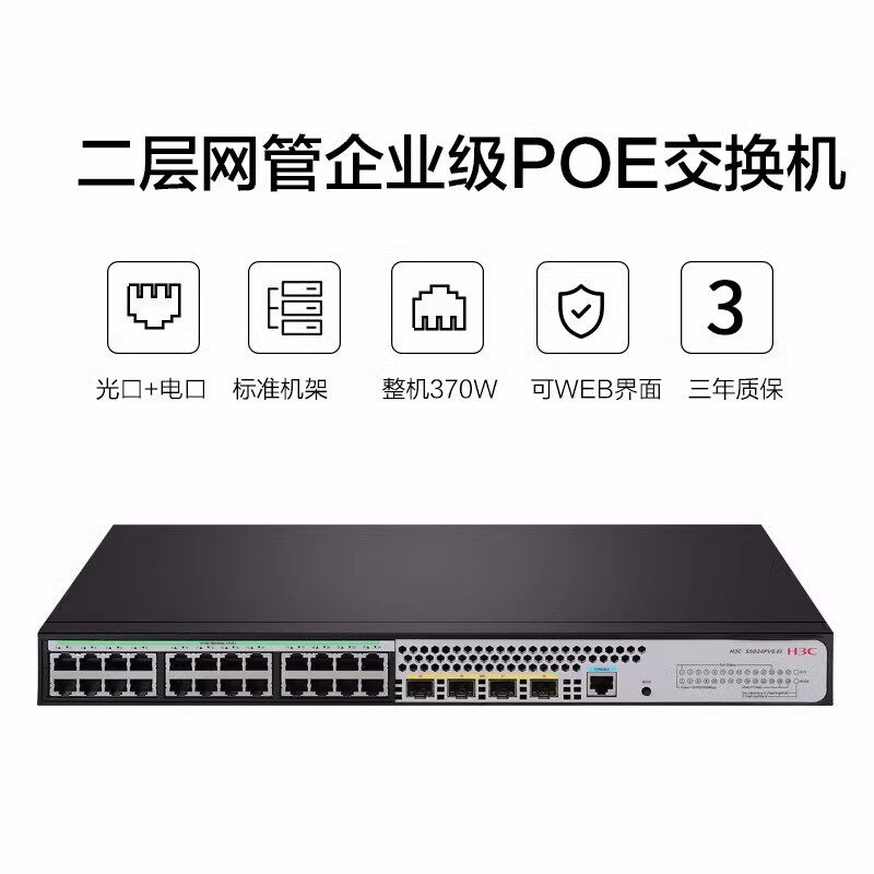 华三(H3C)24电口+4光纤口全千兆强二层网管企业级网络POE供电交换机 S5024PV5-EI-HPWR