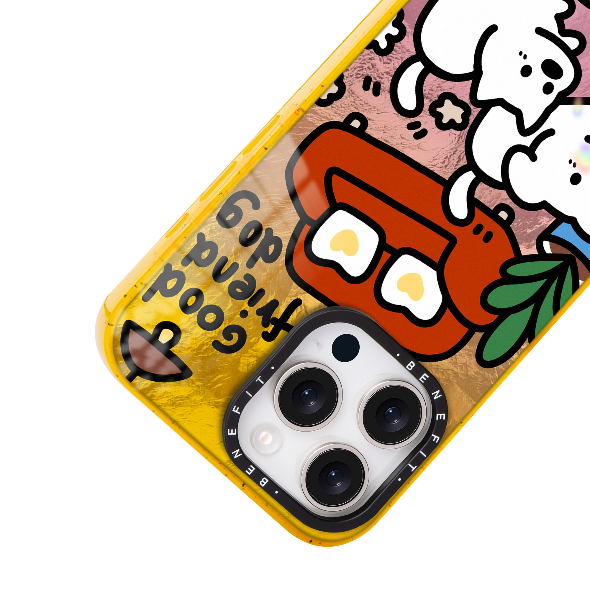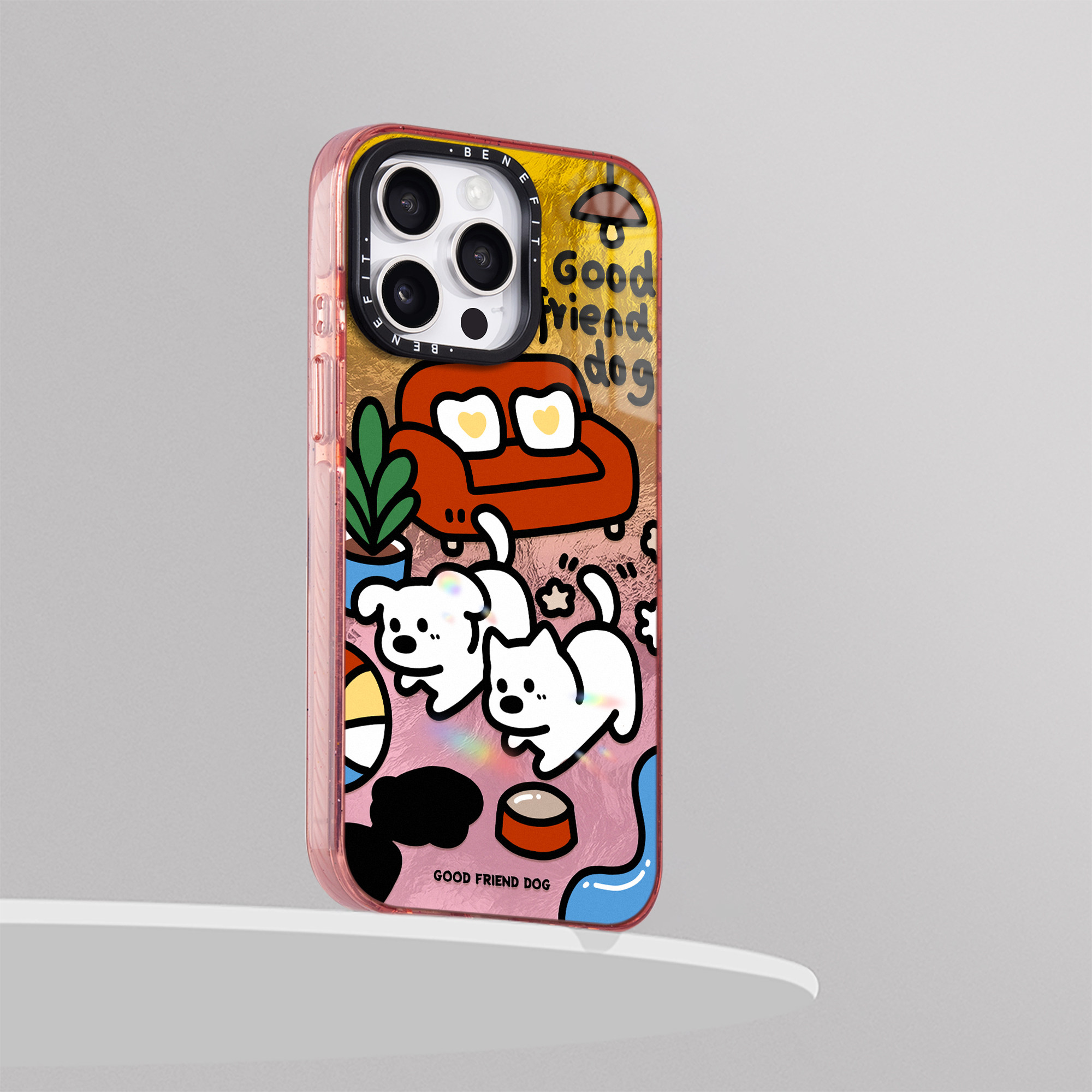 benefit卡通线条狗狗17适用于iphone16promax苹果15PRO晶盾磁吸手机壳13新款14套12渐变冰川纹防摔彩色边框