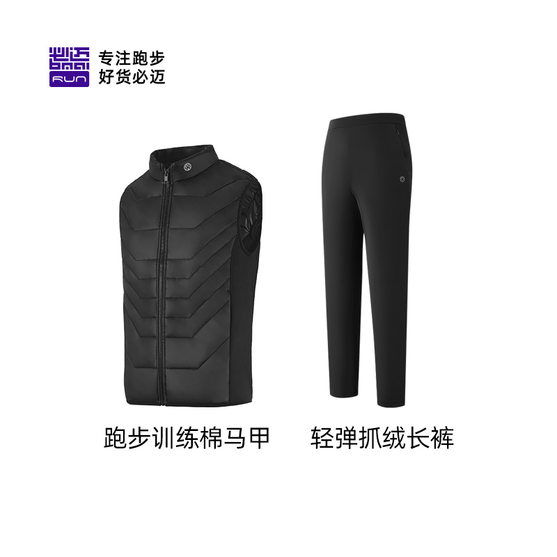 必迈运动加绒套装男女训练棉马甲抓绒长裤户外跑步套装