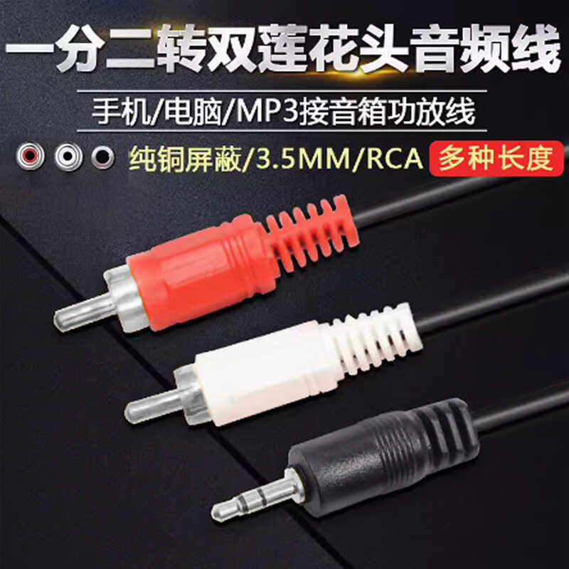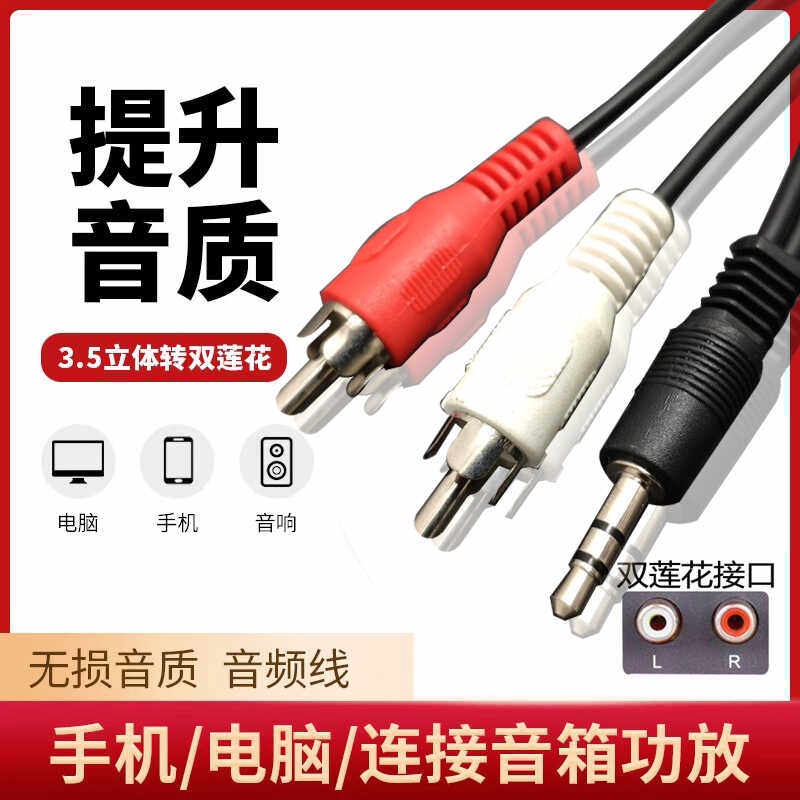 音频一分二输出3.5 转双莲花头手机电脑耳机音箱响功放连接视频线