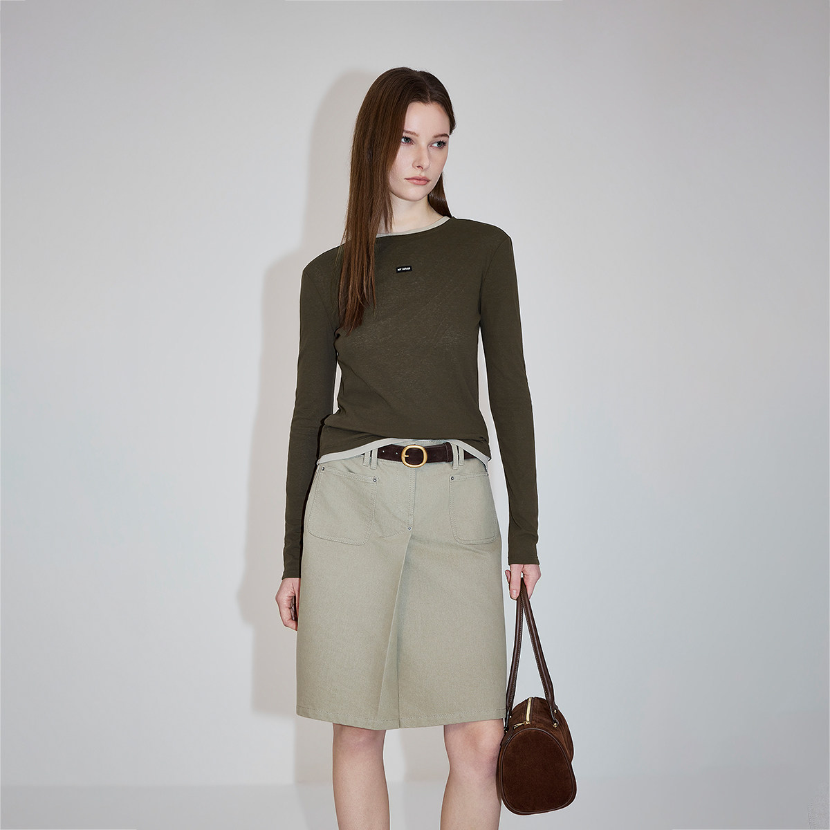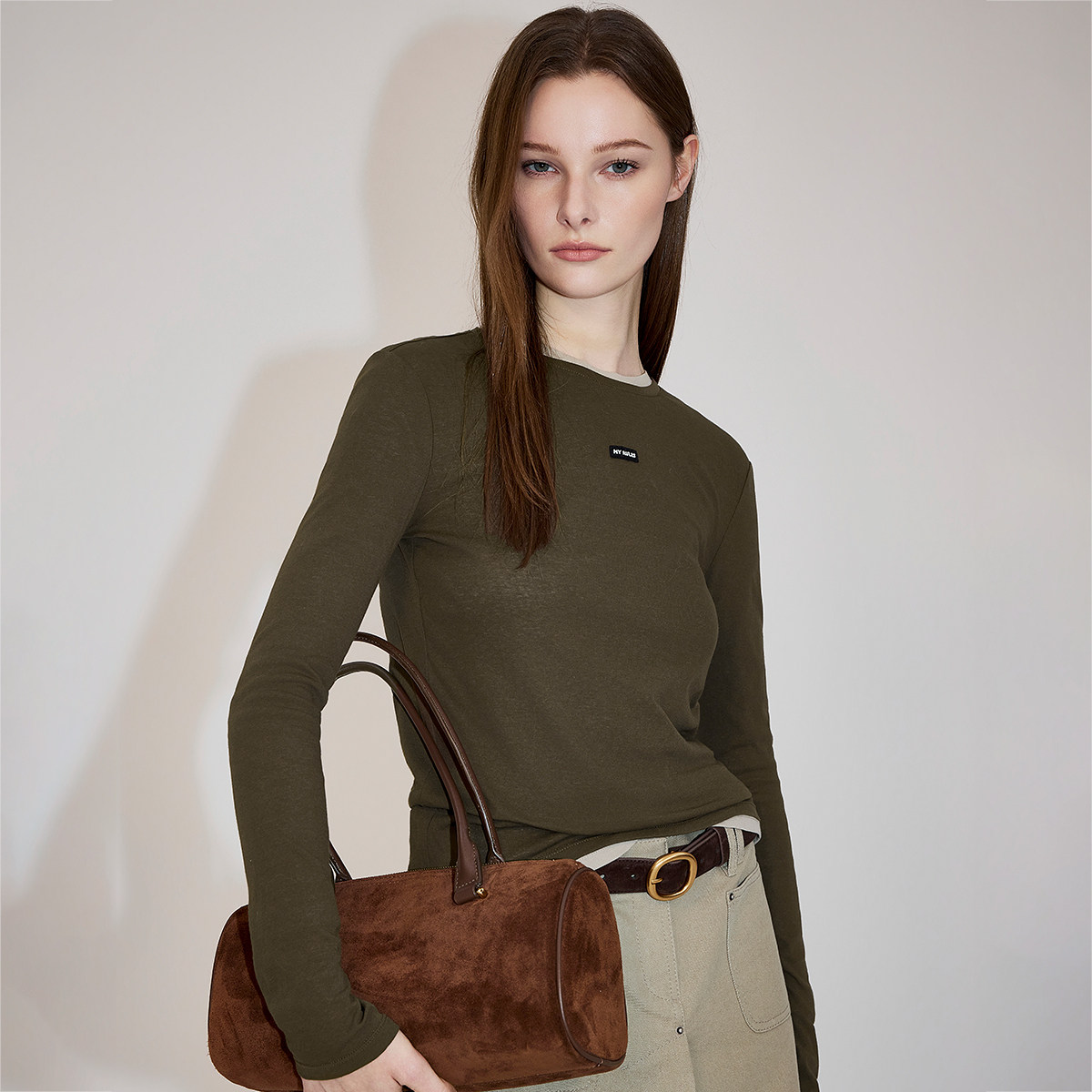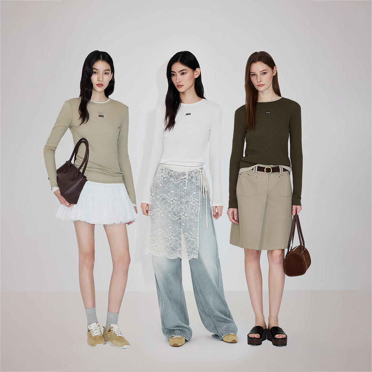 【新品】OCHIRLY欧时力 T恤女2026春季60S精棉绣章内搭长袖上衣