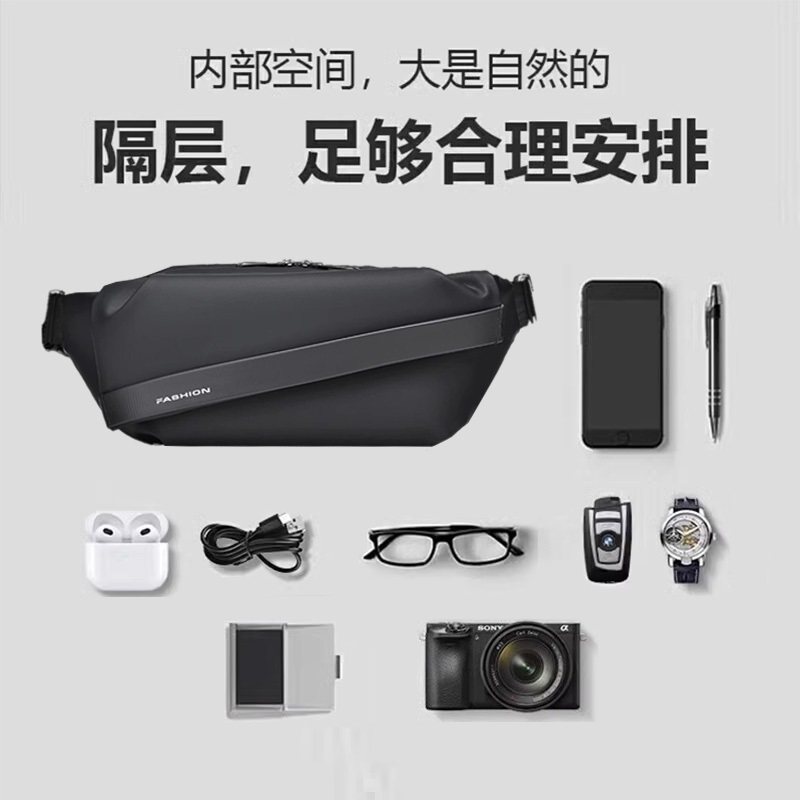 2025新款男士斜挎包防水运动单肩包休闲大容量胸包磁吸扣通勤时尚