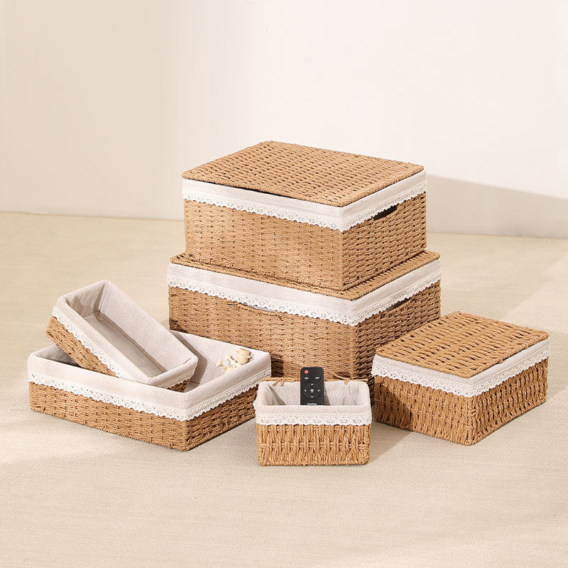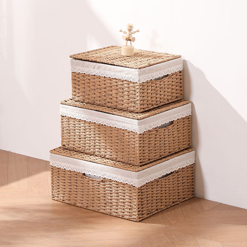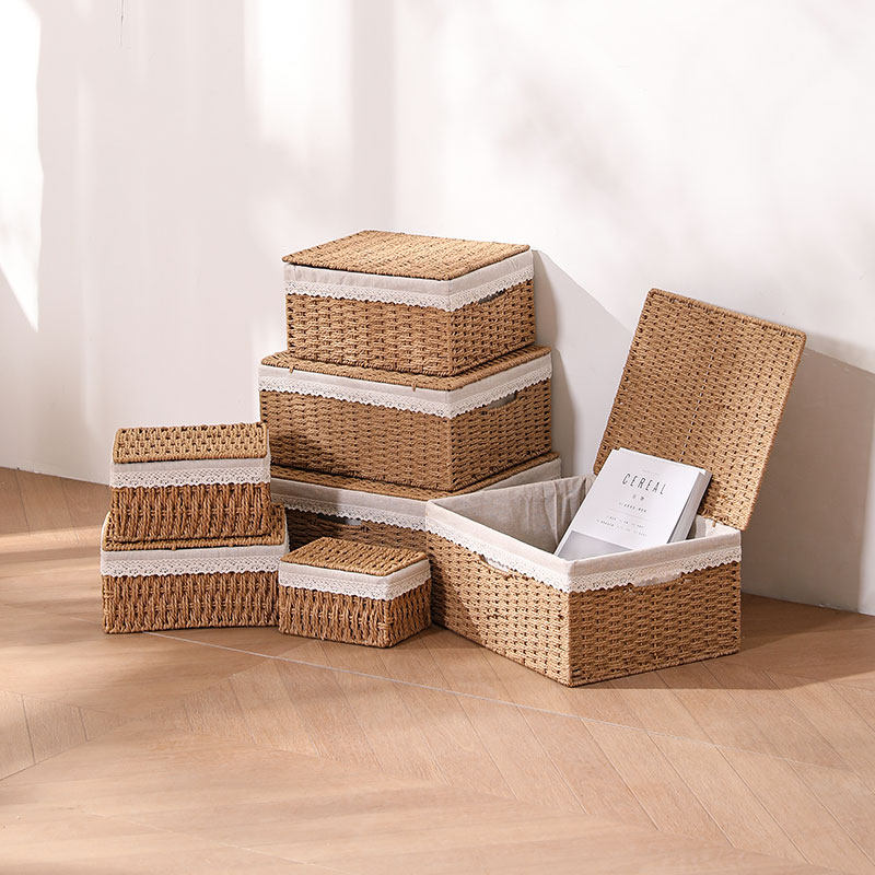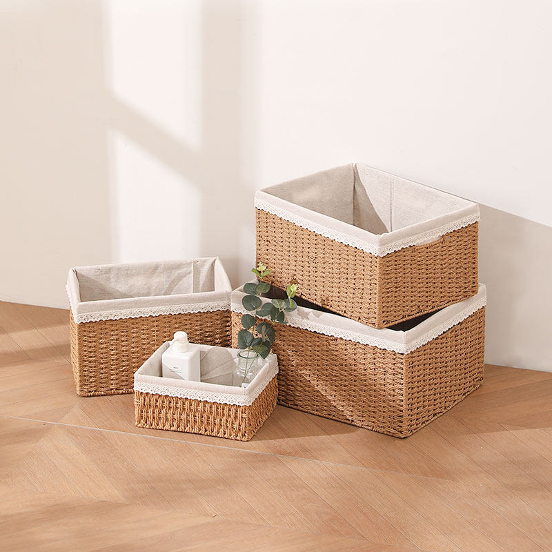 桌面收纳盒家用编织收纳筐仿藤编杂物玩具零食钥匙玄关整理篮分类