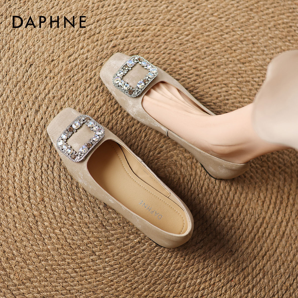 达芙妮浅口单鞋女春季2026新款方头平底瓢鞋女士夏季软底妈妈鞋子