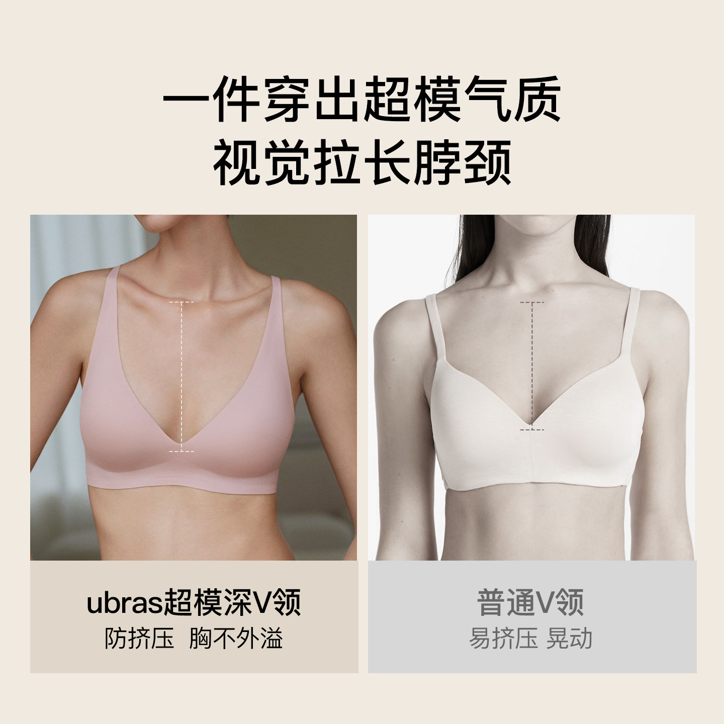 【香菇来了】ubras深V长三角无痕小胸聚拢舒适光面文胸