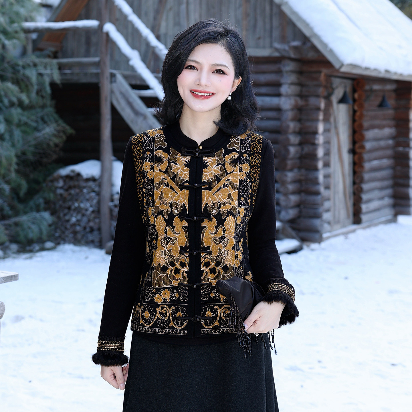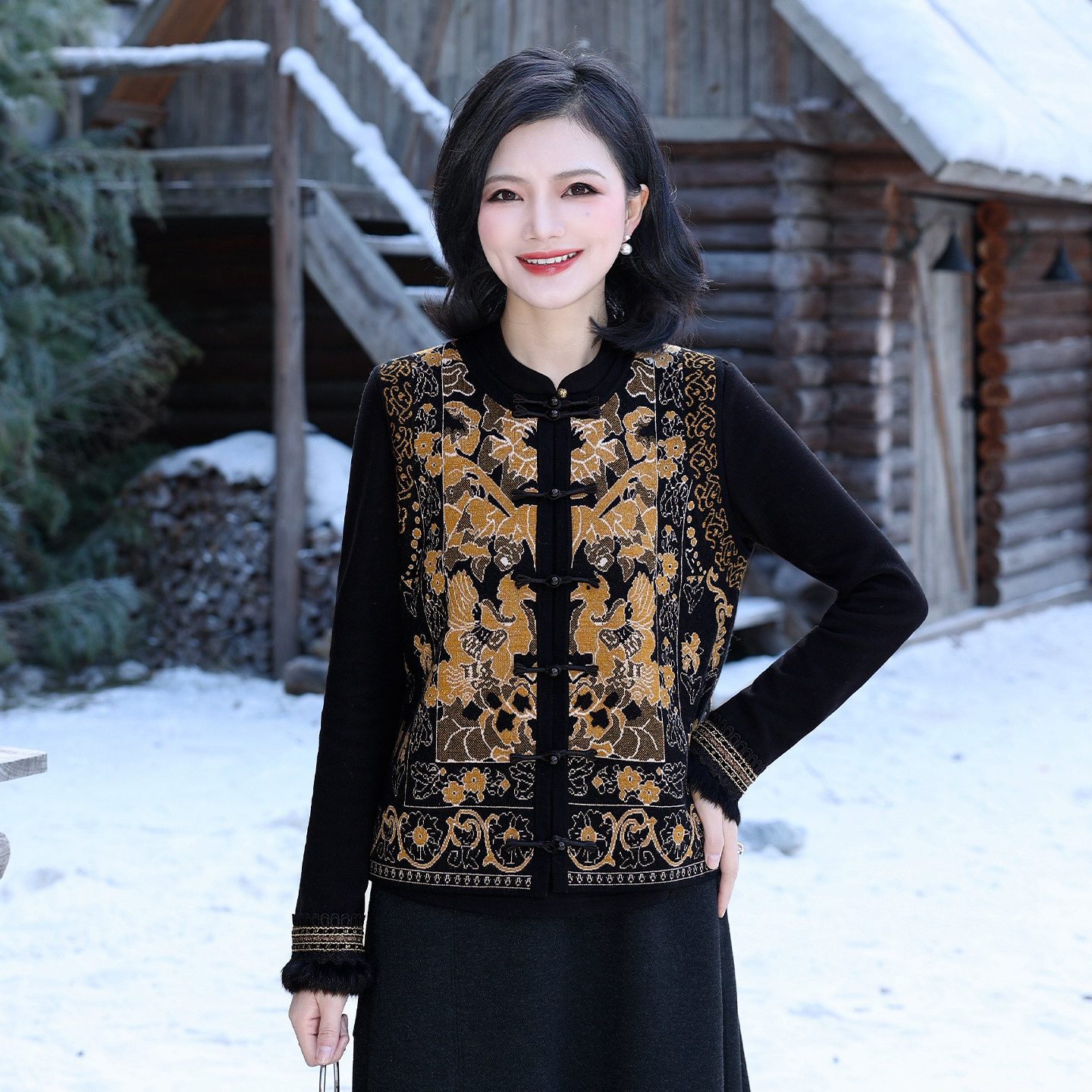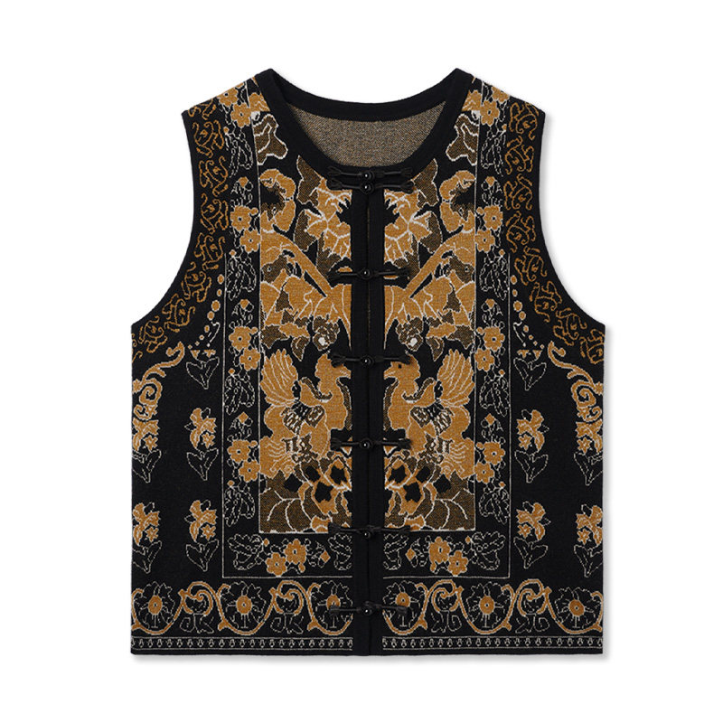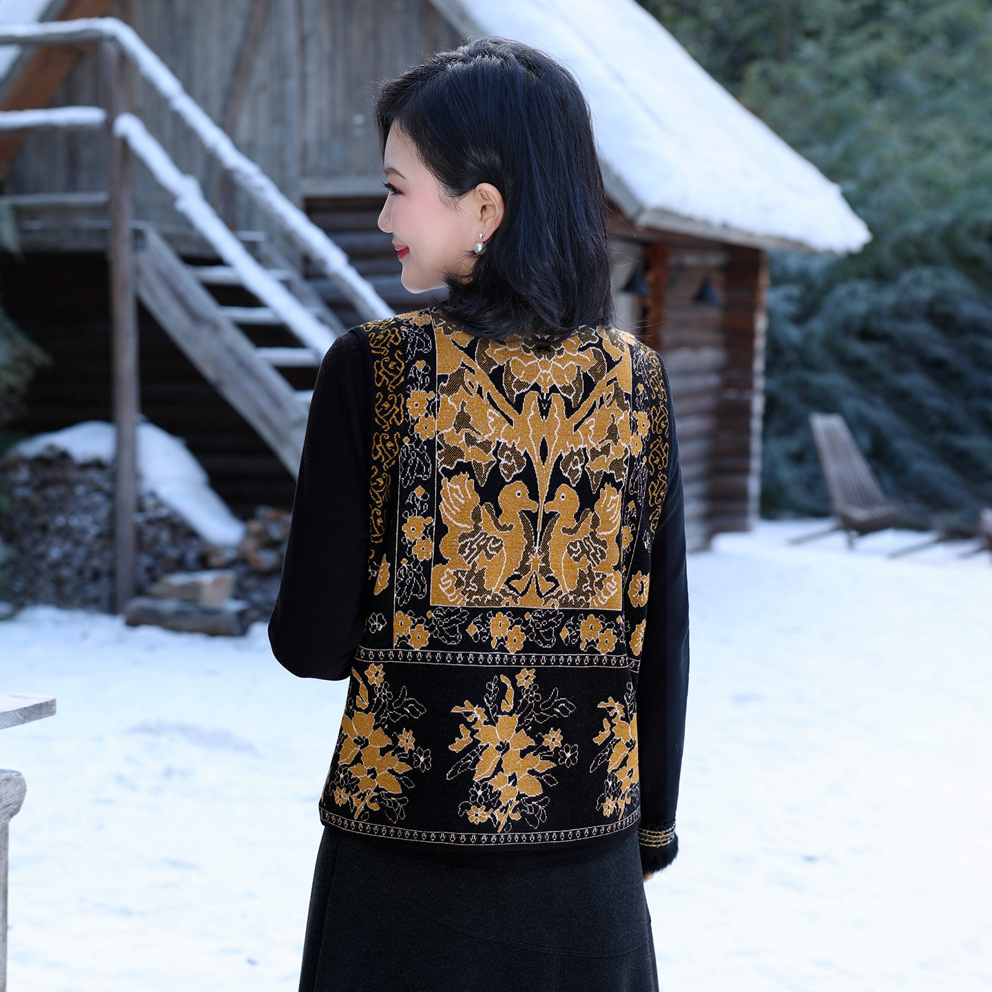 枫竺新中式国风定位花提花盘扣全羊毛针织马甲女秋冬坎肩叠穿背心