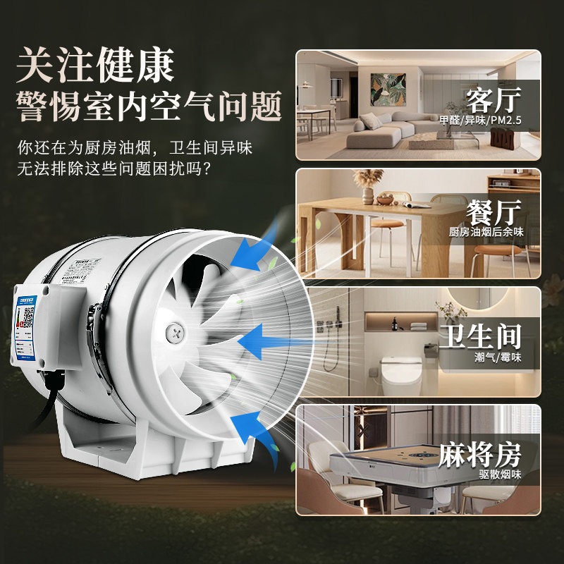 管道排风扇强力抽风机排气扇厨房换气扇卫生间家用抽油烟扇大吸力