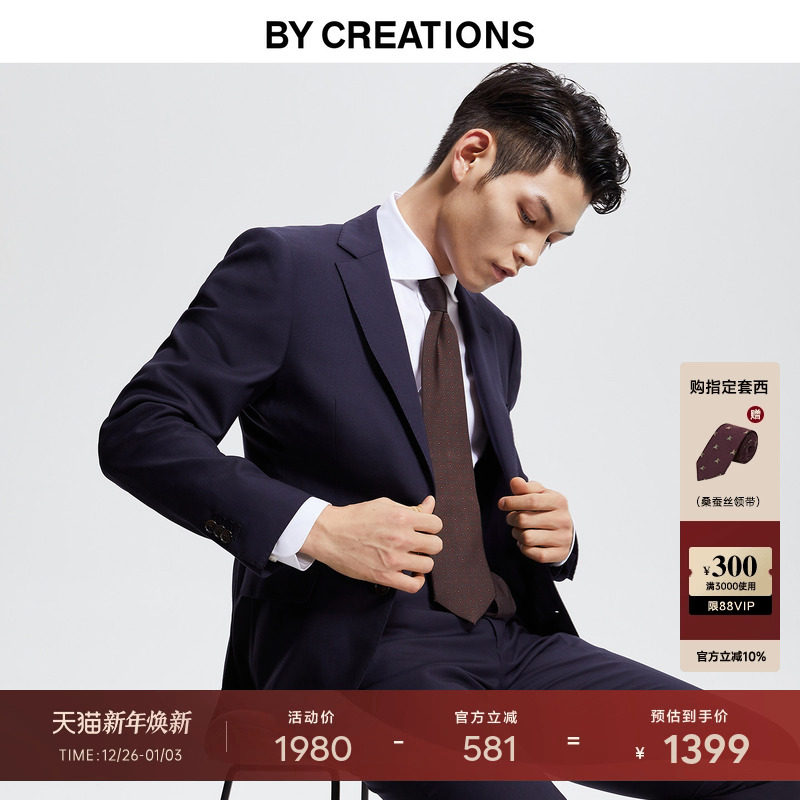 柏品130支纯羊毛商务西服套装男职业正装结婚婚礼新郎伴郎西装