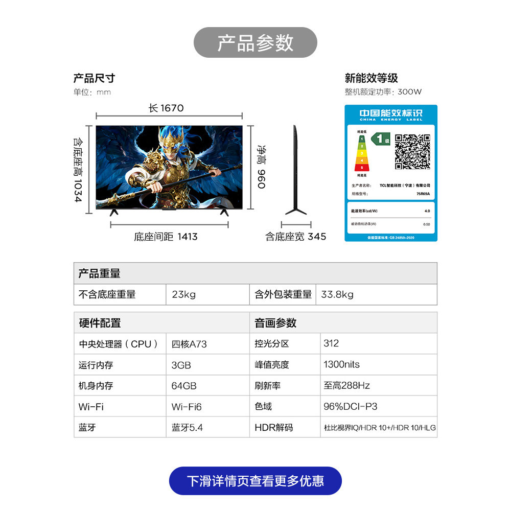 TCL雷鸟鹤6 26款75英寸QD-MiniLED高价VA屏电视机以旧换新补贴85