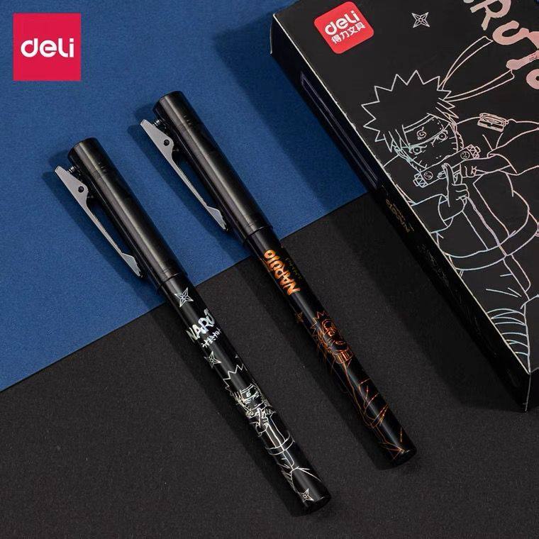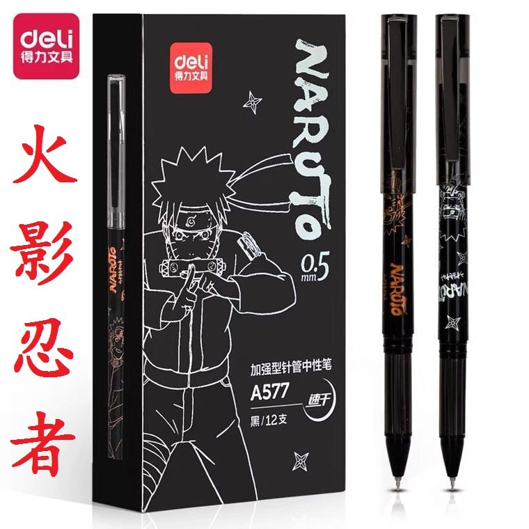 得力火影忍者中性笔0.5mm速干高颜值黑色ST加强笔头水笔滚珠学生限定热销榜限量版可爱好用的初中小学生