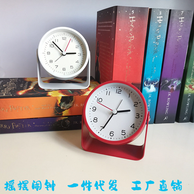 金属闹钟 小转钟 摇摆座钟 静音带闹钟石英钟 新款学生闹钟3.5寸