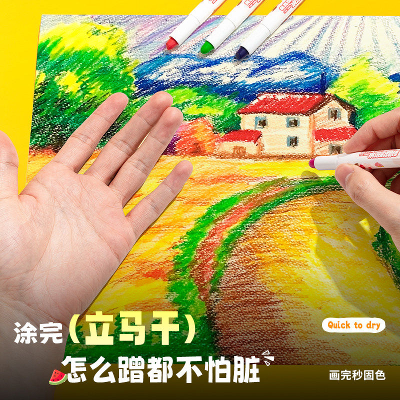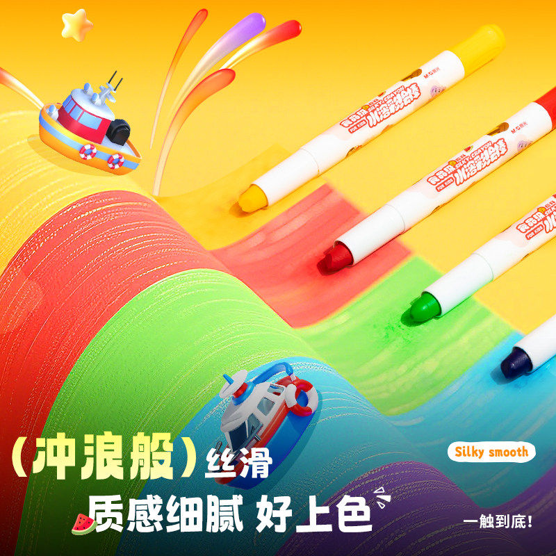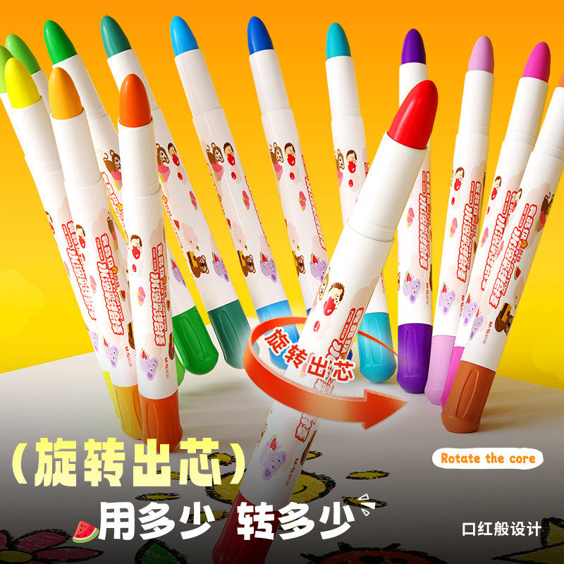 晨光筒装食品级水溶彩绘棒旋转出芯口红设计速干固色不脏手幼儿园学生专用儿童美术蜡笔安全食品级画画彩绘棒