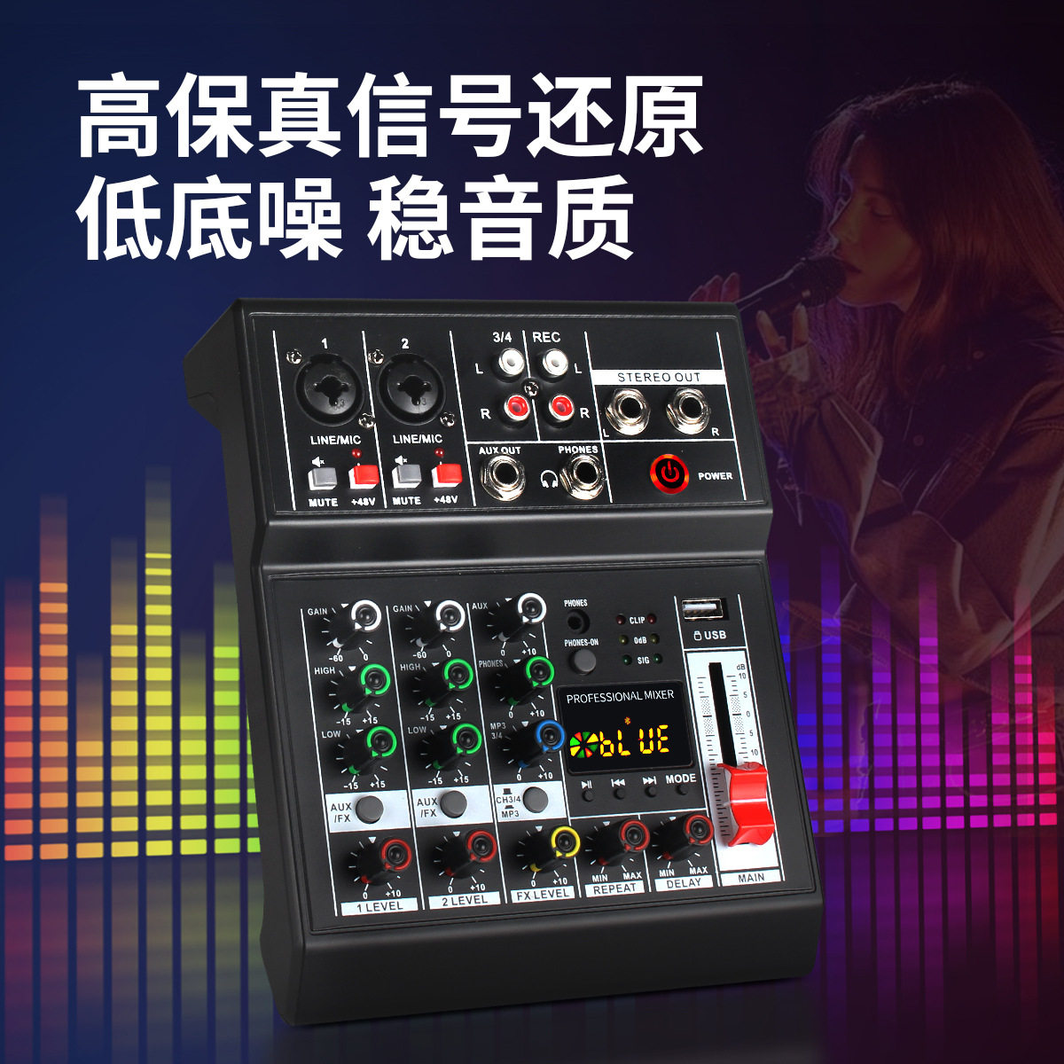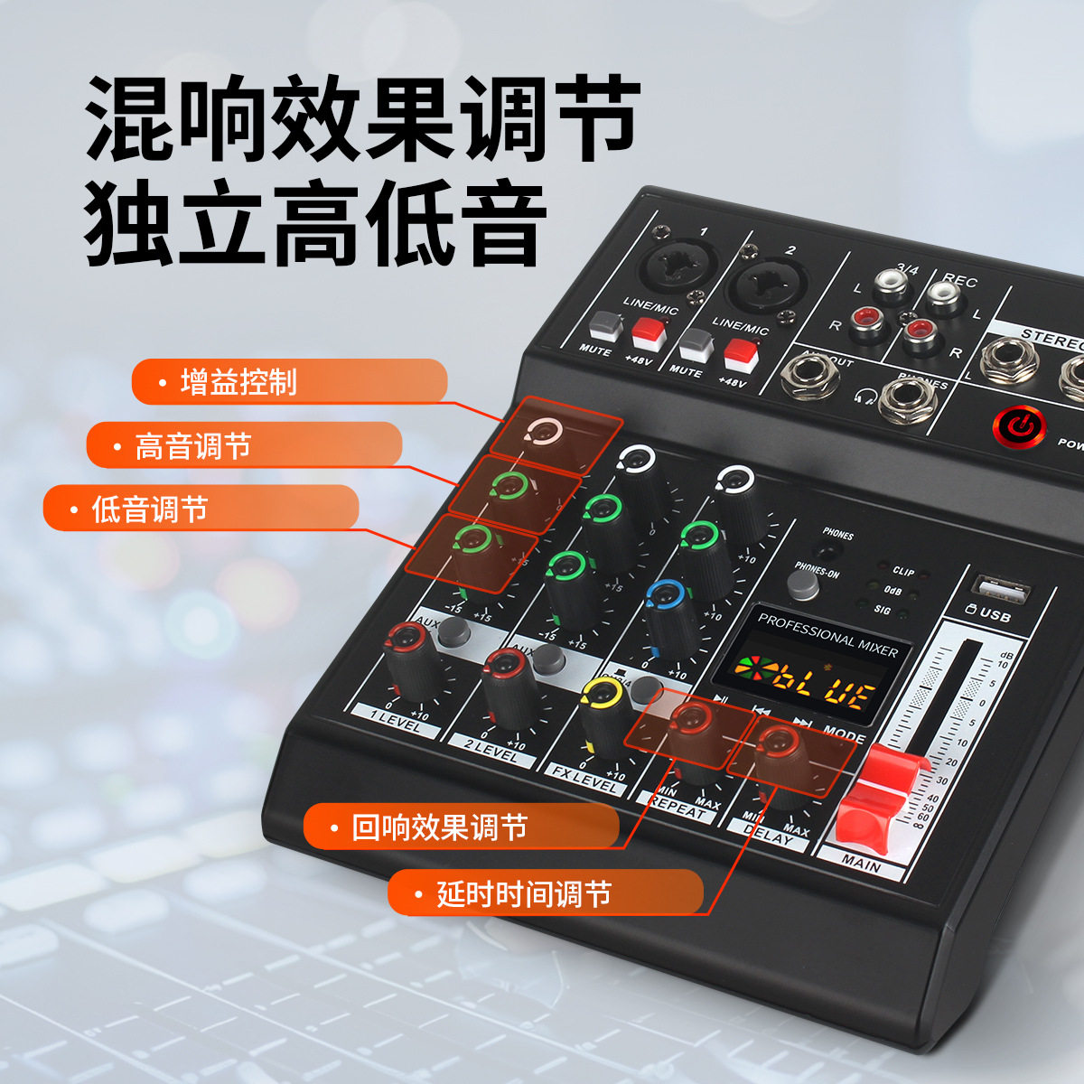 新款 2026跨境迷你4路调音台带效果蓝牙电脑录音小型会议专业混音