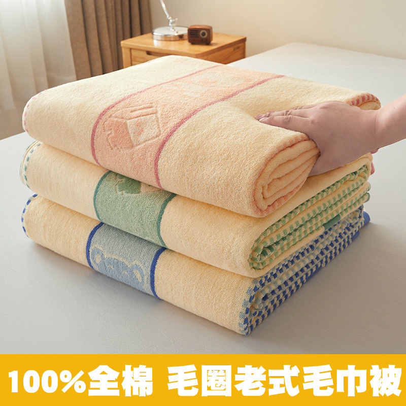 全棉老式毛巾被100纯棉夏季上海老牌毛巾毯单人盖毯薄款空调毯子