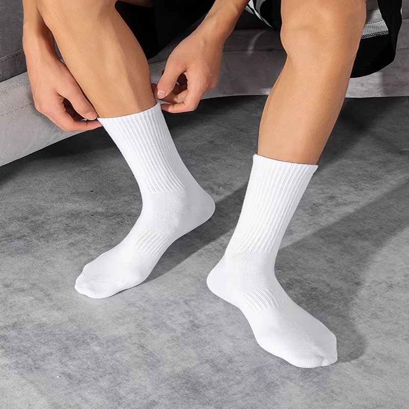袜子男中筒袜男士袜子吸汗透气长筒袜篮球袜白色男袜白色白塔袜子