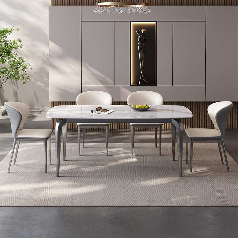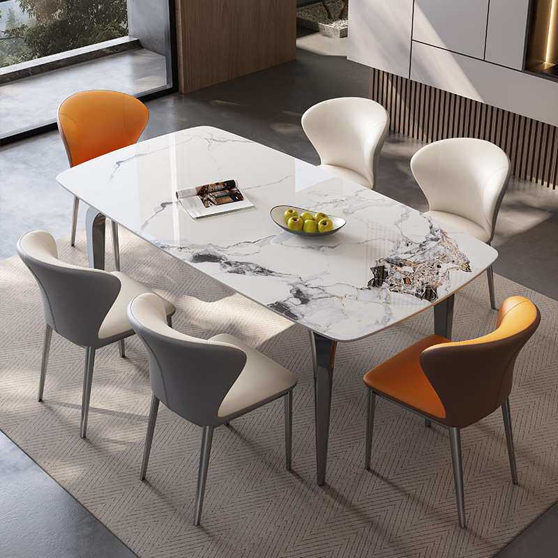 现代简约超晶石餐桌椅组合轻奢长方形吃饭桌子小户型微晶石西餐桌