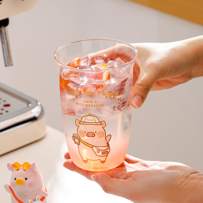 川岛屋&lulu猪联名 高硼硅玻璃水杯女高颜值咖啡啤酒果汁牛奶杯子