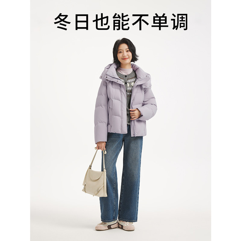 【鞠婧祎同款】鸭鸭2025年冬新款百搭短款女士纯色立领羽绒服外套