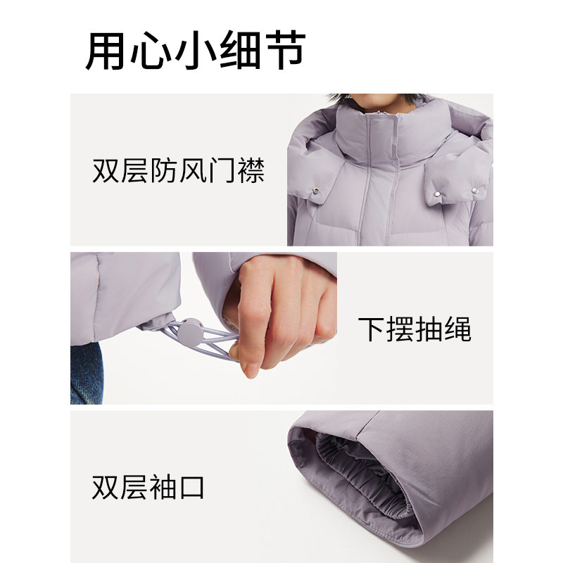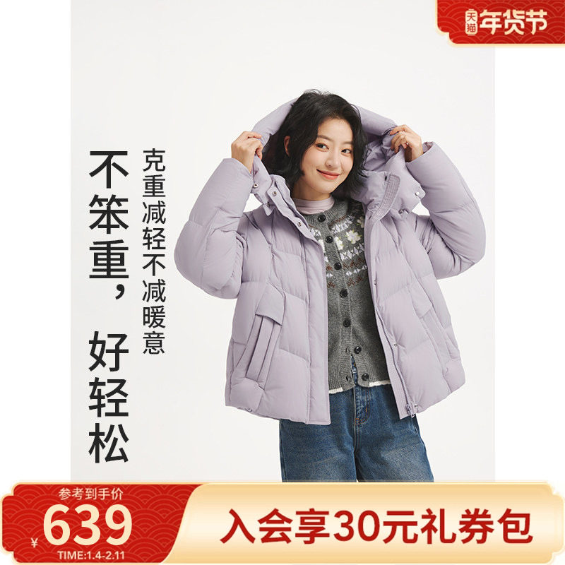 热风女士羽绒服2025年冬季新款连帽蓬松泡芙羽绒服保暖御寒羽绒服