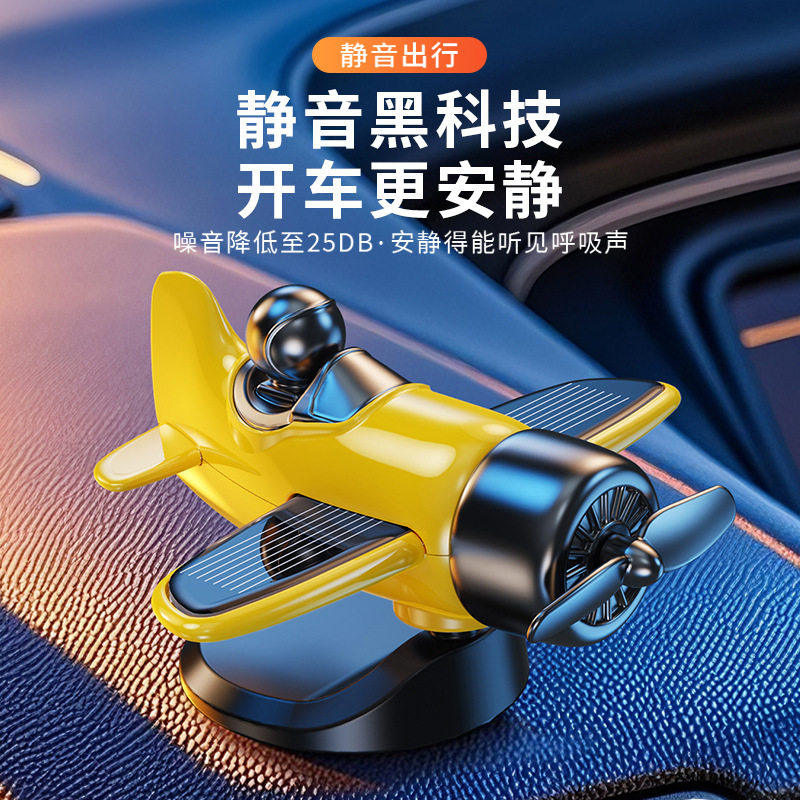 新款太阳能车载旋转小飞侠飞机创意有趣装饰品摆件车内中控台汽车