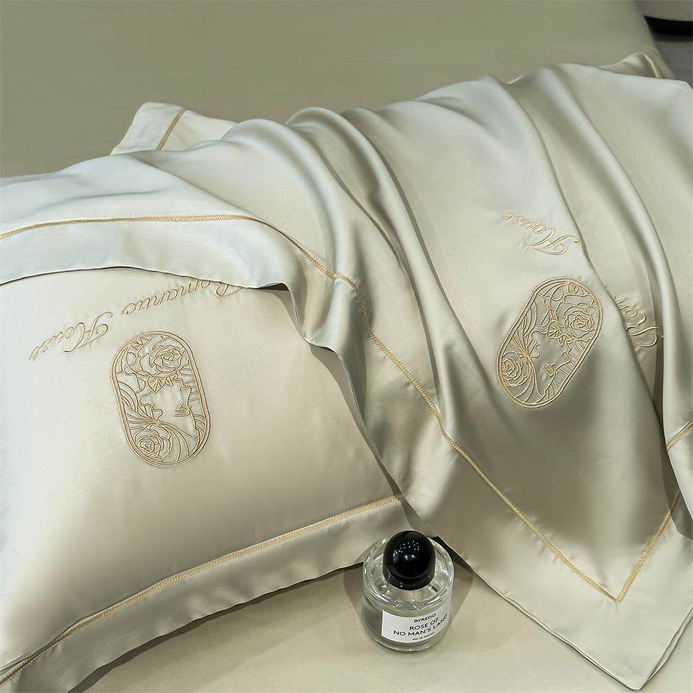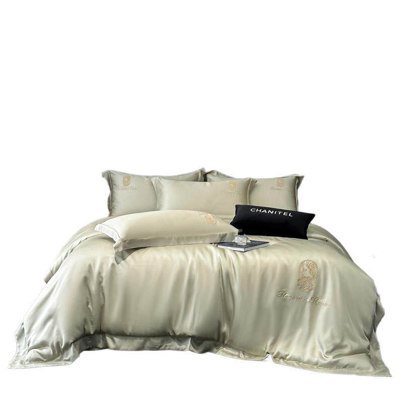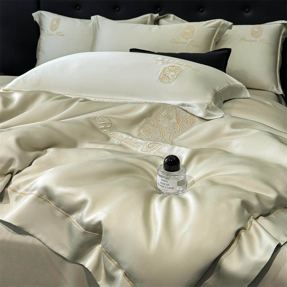 夏季冰丝刺绣轻奢水洗真丝四件套丝滑床单被套高级裸睡床上三件套