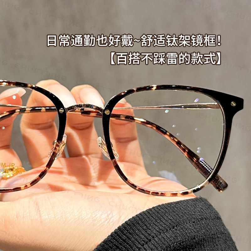 loho冷茶色素颜超轻眼镜女近视可配度数防蓝光大脸高级感眼睛镜框