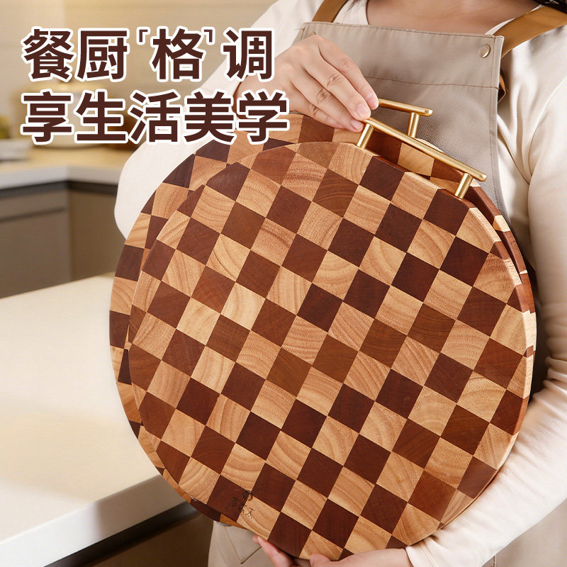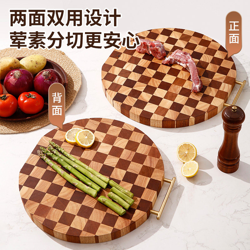 原森太棋盘格菜板防霉抗菌家用砧板实木切菜板圆形厨房专用粘案板