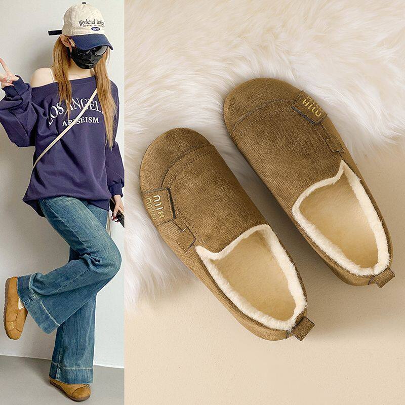 老北京妈妈鞋中老年女士勃肯加棉休闲一脚蹬豆豆鞋加绒棉鞋女平底