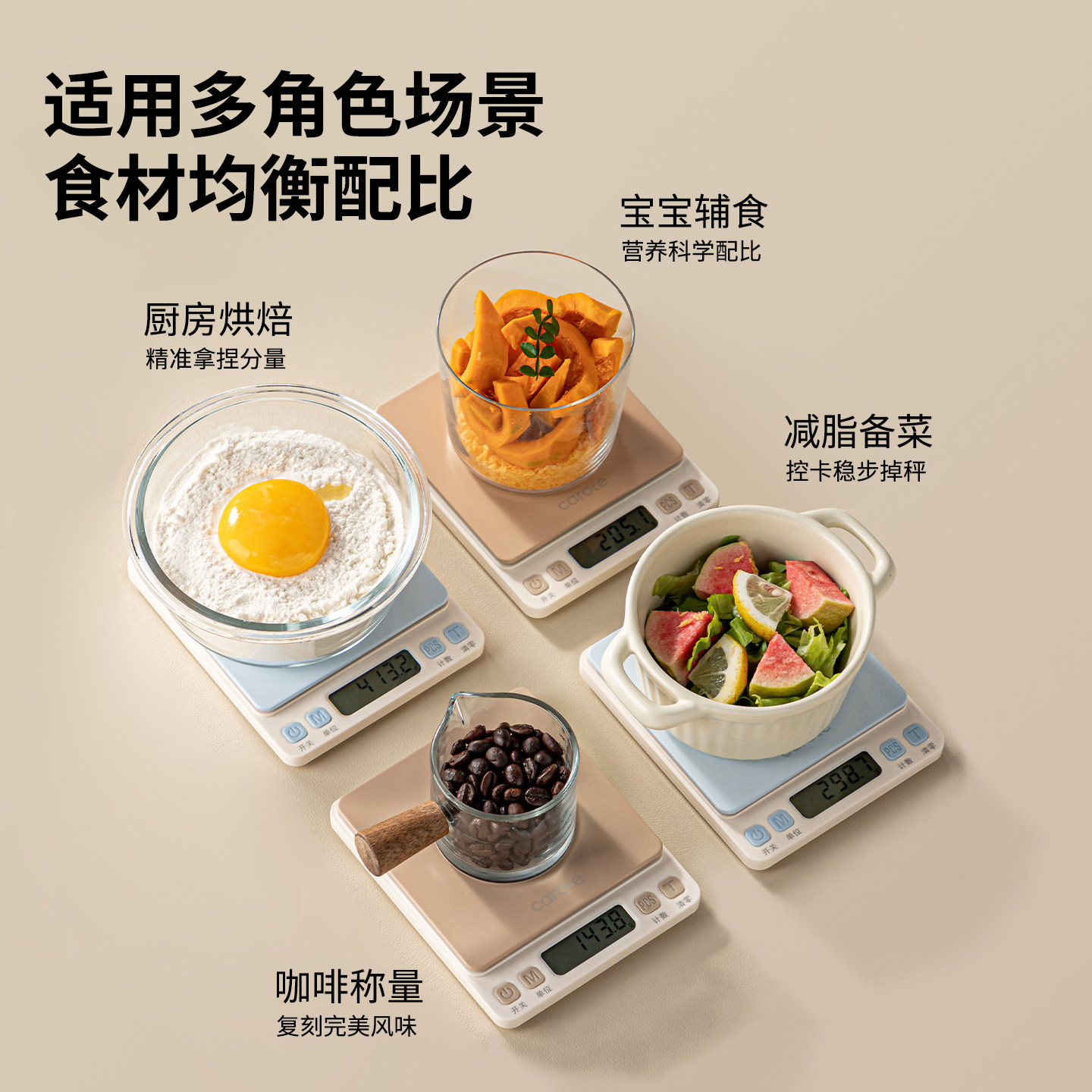 卡罗特厨房电子秤克称小型精准电子称高精度家用烘焙称重食物台秤