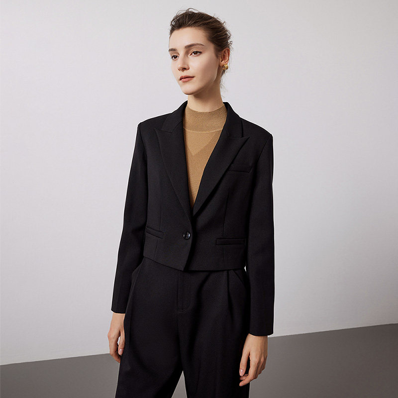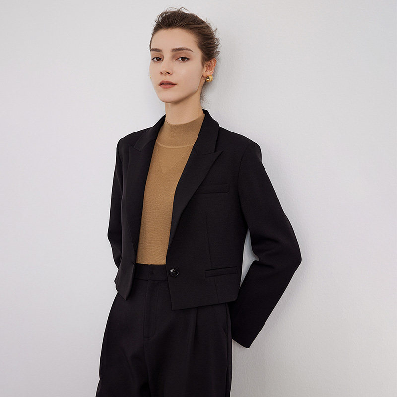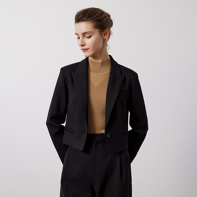 芝美日禾 极简弹力针织小个子西装外套女单层修身一粒扣职业正装