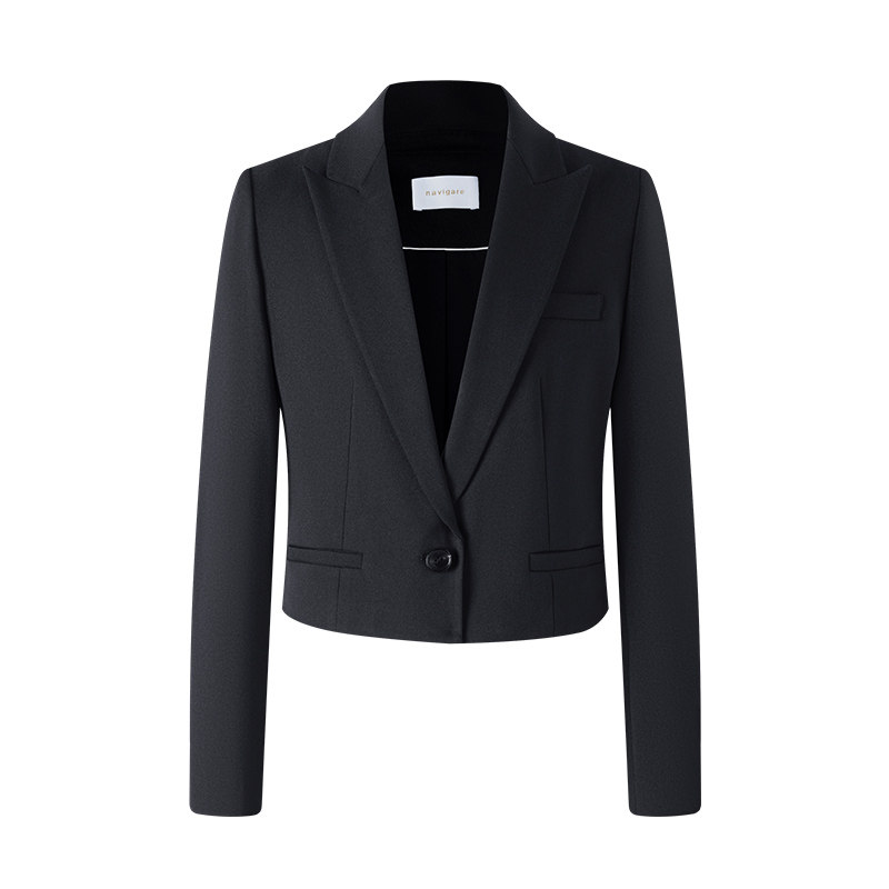 Navigare意大利小帆船黑色休闲宽松西服女秋季短款戗驳领西装外套