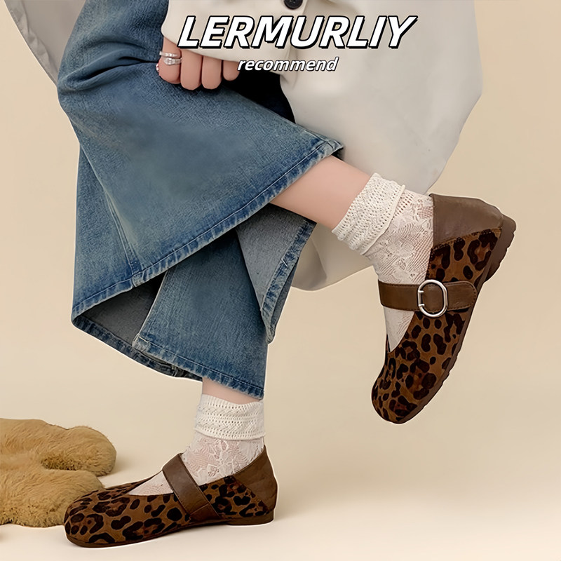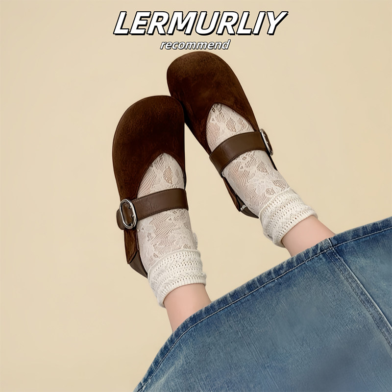羊皮版复古玛丽珍鞋女方头秋冬季加绒保暖毛毛棉鞋平底晚晚单鞋女