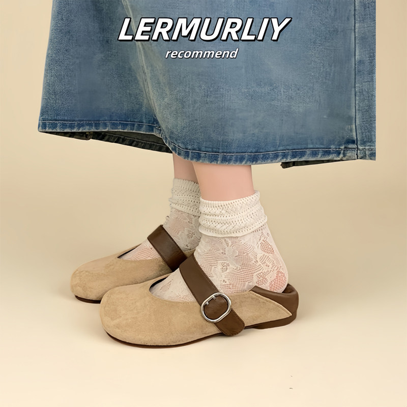 米霏~法式平底芭蕾单鞋女秋冬2025新款软底一脚蹬蛋卷鞋大码女鞋