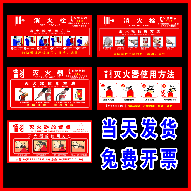 物业消防栓消火栓箱门灭火器放置点自粘贴纸操作使用方法标识标牌