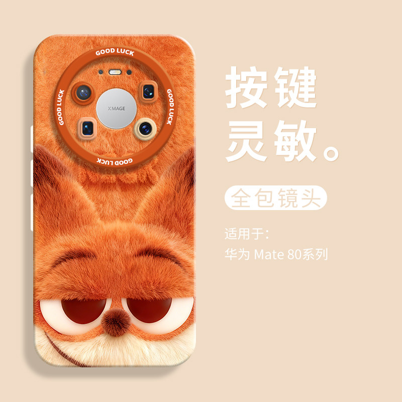 毛茸茸朱迪尼克头适用华为mate80手机壳mate80pro全包瞳眼硅胶壳mate80promax防摔保护套mt80RS非凡大师男女