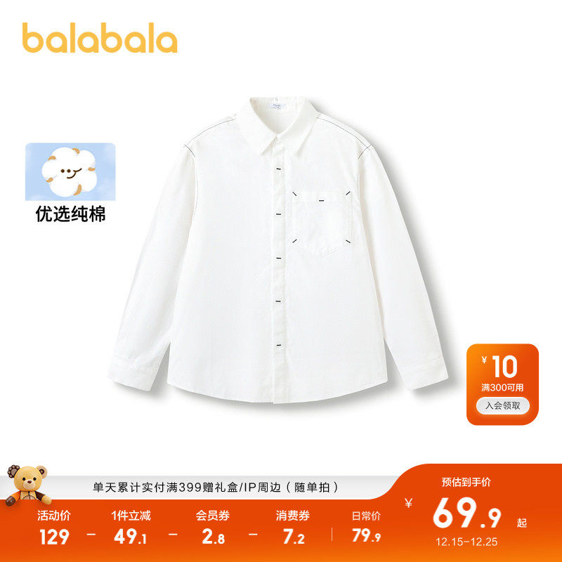 巴拉巴拉童装儿童长袖衬衫男童上衣秋装2025纯棉衬衣百搭大童潮酷
