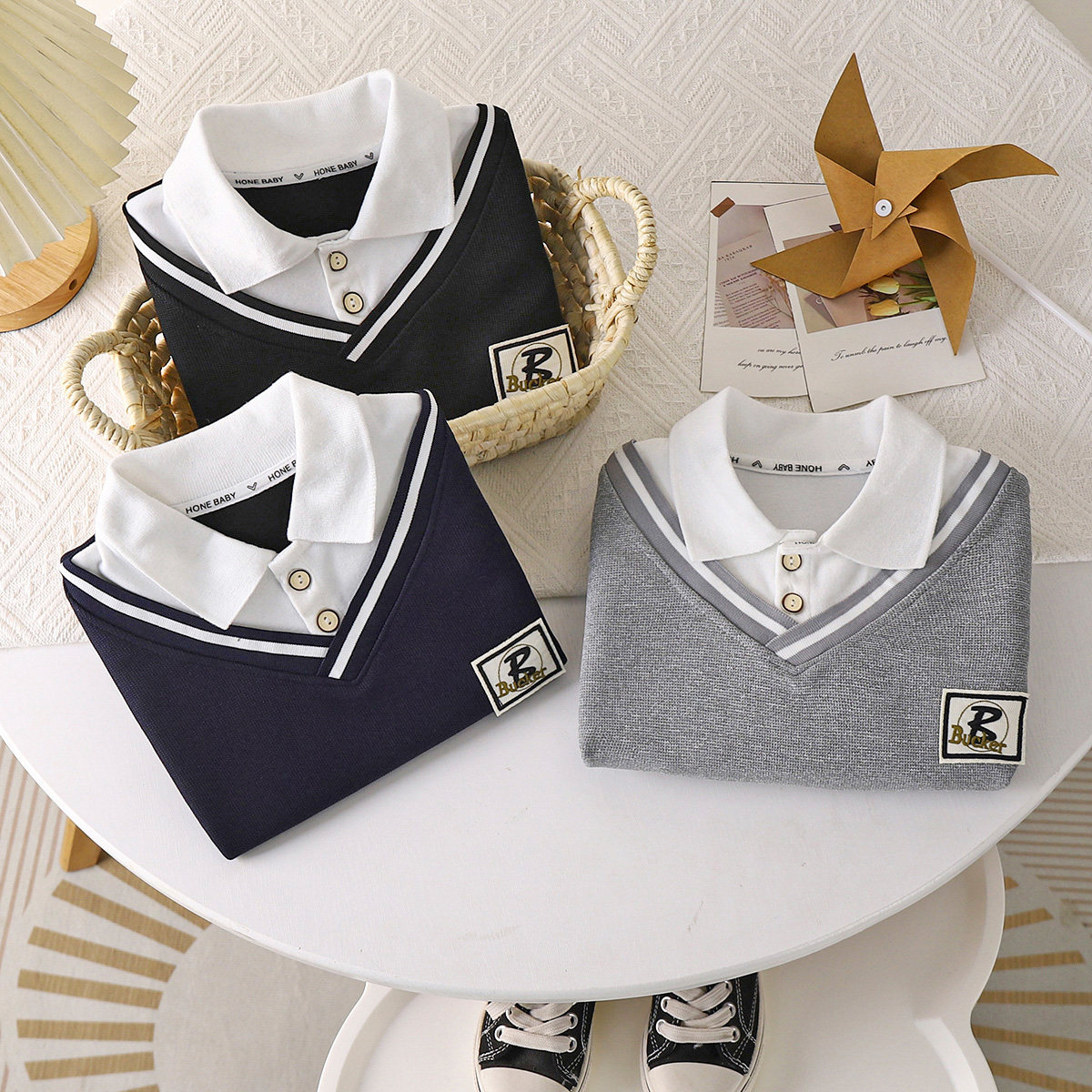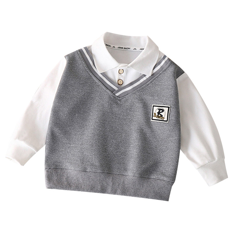 婧麒男童春装衬衫外套2025新款洋气假两件翻领春秋款童装上衣儿童
