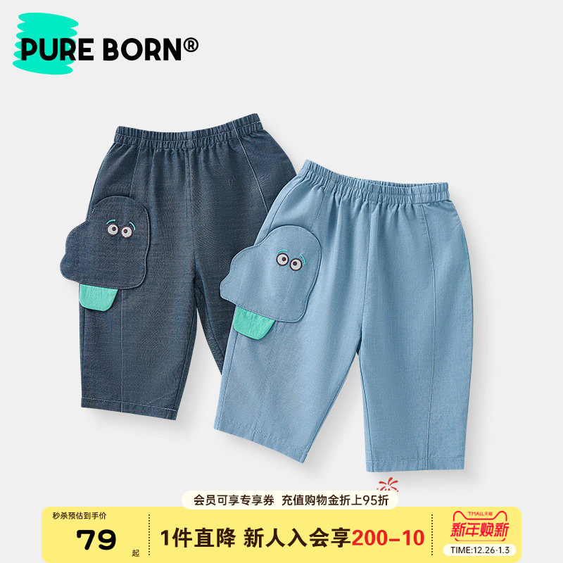 博睿恩男女童钱布雷软牛仔裤2025夏季新款九分裤百搭休闲薄裤子