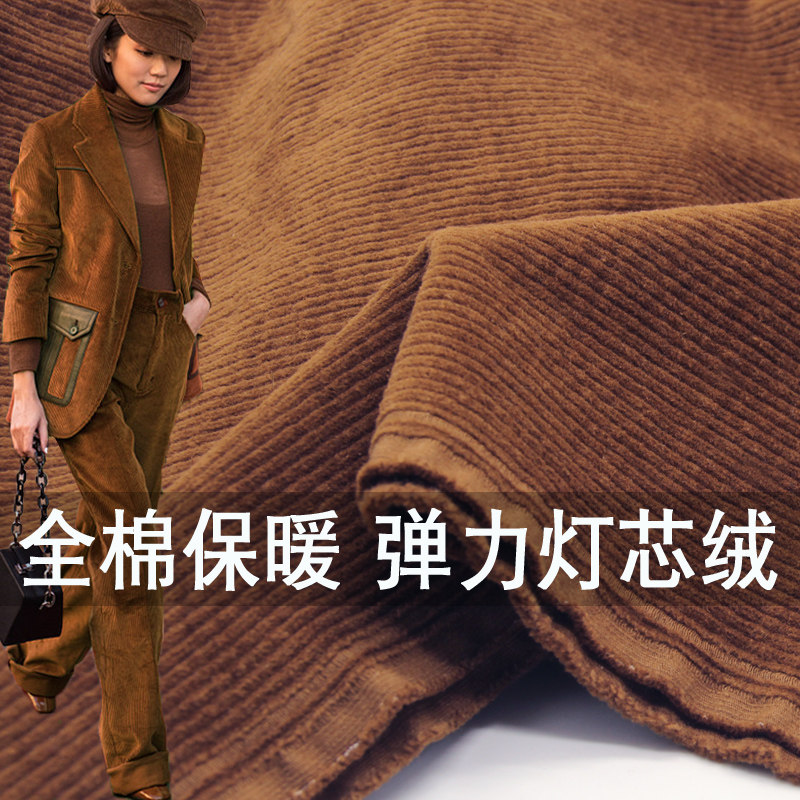 灯芯绒布料面料厚全棉绒布秋冬西装裤子弹力高端纯棉条绒条纹