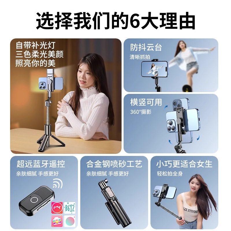 新款手机自拍杆万能防抖拍照神器可伸缩旋转蓝牙通用多功能三脚架