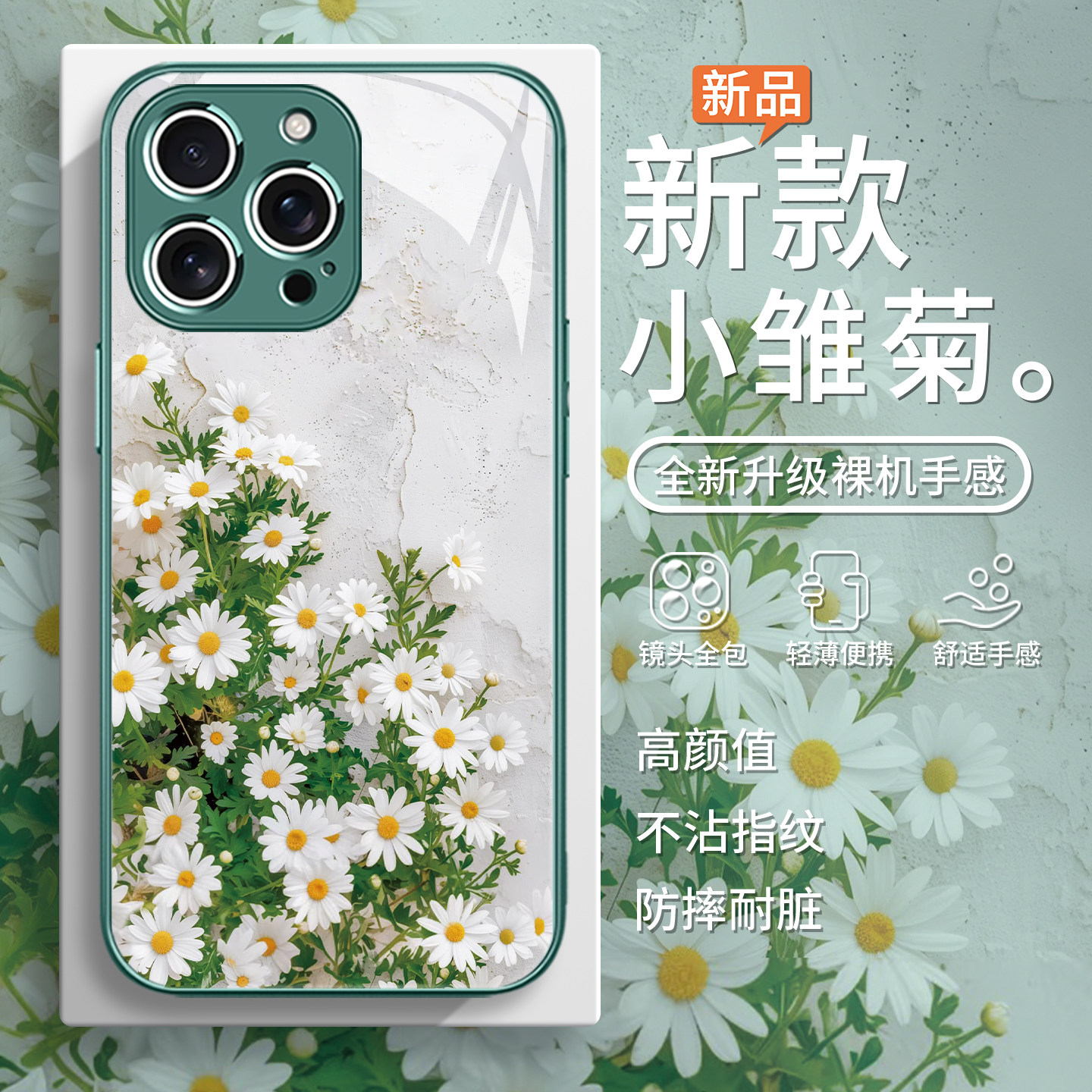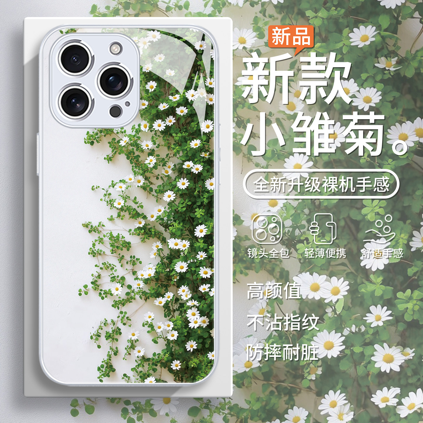 适用苹果15pro小雏菊手机壳14promax小清新16plus高级感iphone13夏天17pro女款max小众12mi全包防摔11玻璃16e
