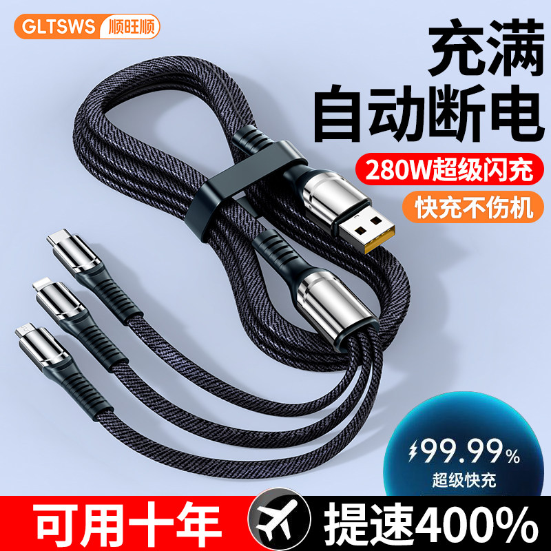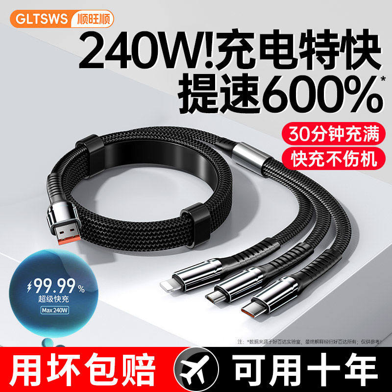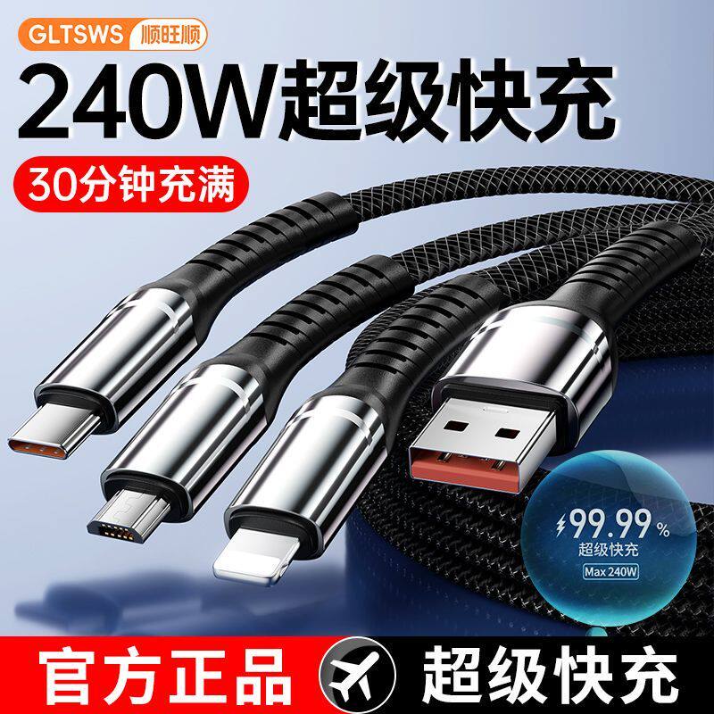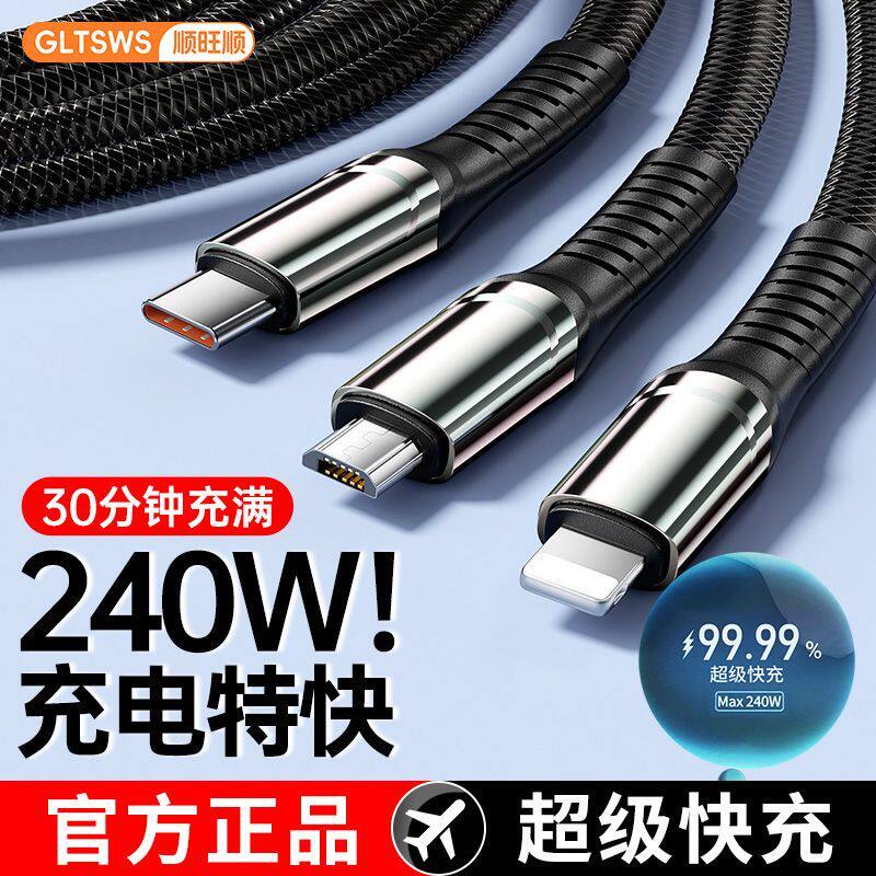 新款240W一拖三全兼容超级快充套装数据线三合一适用iPhone16promax苹果15手机华为mate60小米荣耀充电线插头
