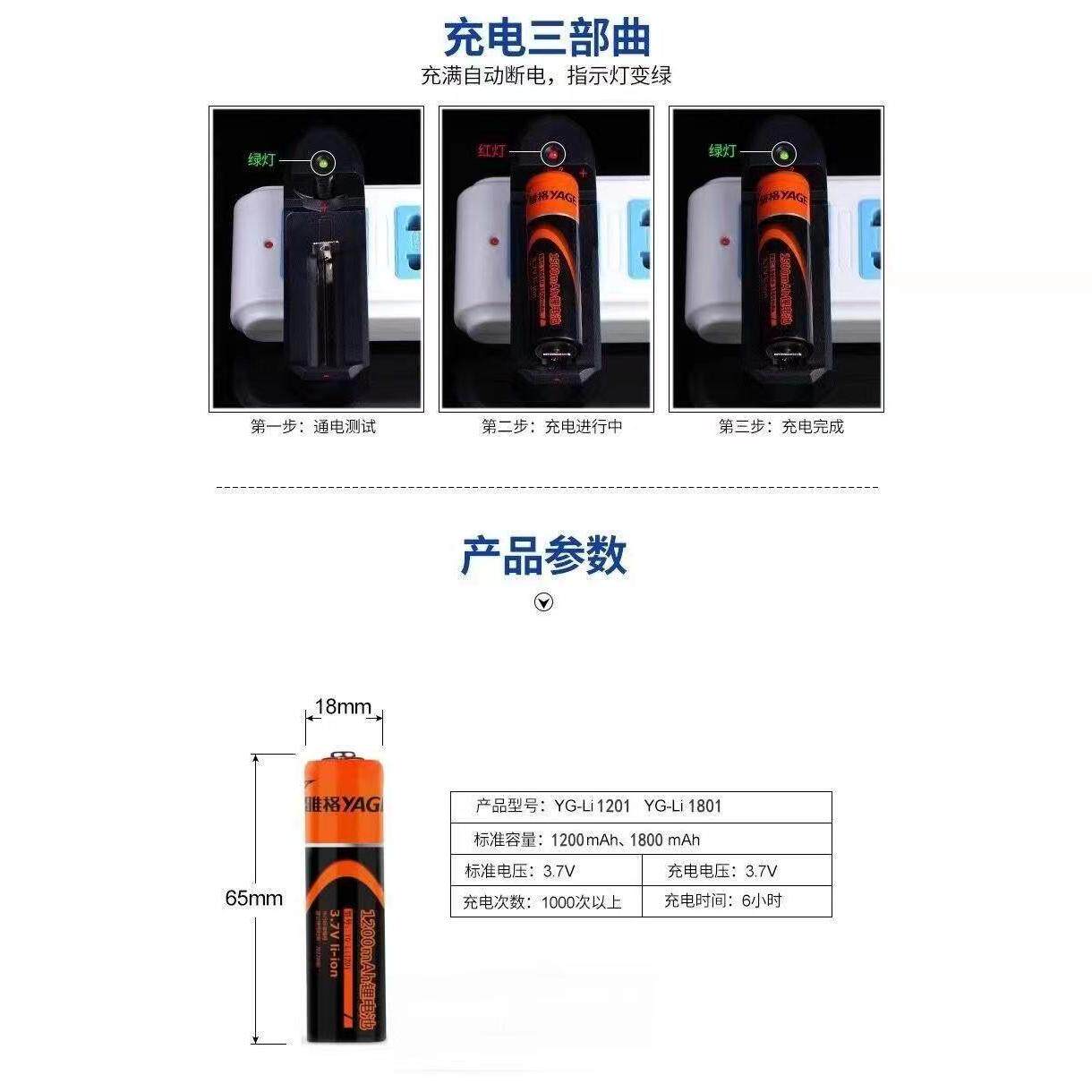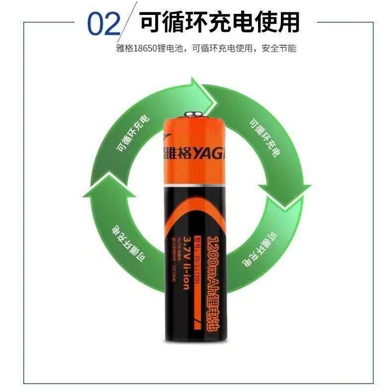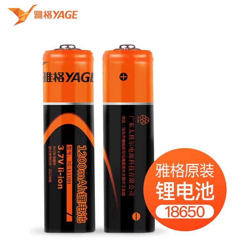 雅格原装18650可充电大容量强光手电筒台灯风扇锂电池座充带保护