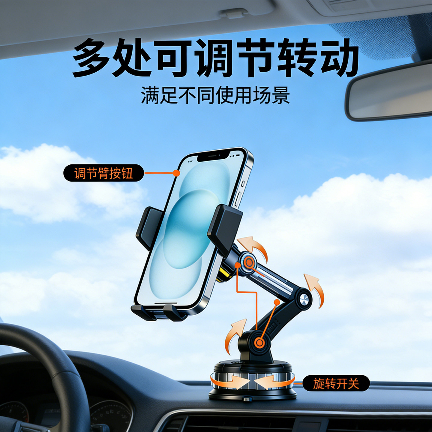 手机车载支架中控仪表台后视镜多功能汽车内用导航万能支撑架固定