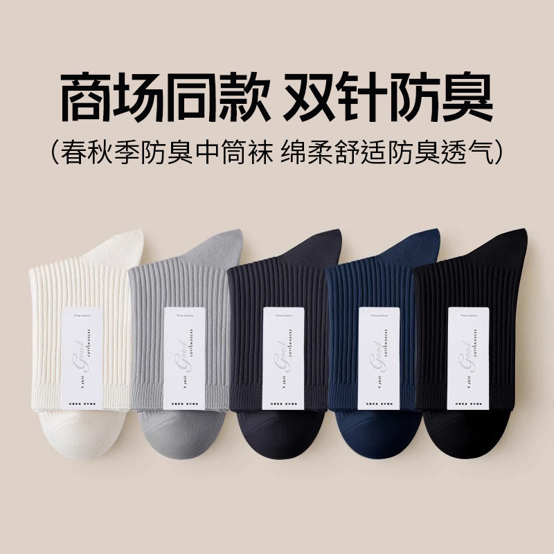 袜子男款秋冬季纯色防臭中筒袜男士吸汗透气运动男袜春秋商务长袜
